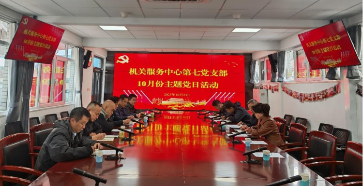 2025年10月23日,机关服务中心第七党支部组织开展10月主题党日活动,第七党支部书记郝京生主持会议。