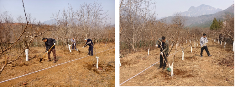 植树现场热火朝天、干劲昂扬,处处呈现繁忙奋进的生动景象。大家分组协作、分工明确,挥锹培土、回填基肥、提水浇灌,配合默契、衔接有序。经过数小时辛勤劳作,悉心养护了2025 年定植于基地的48株桃树,助力苗木长势茁壮、生机盎然,为教育部绿化基地增植新绿、厚植生态底色。