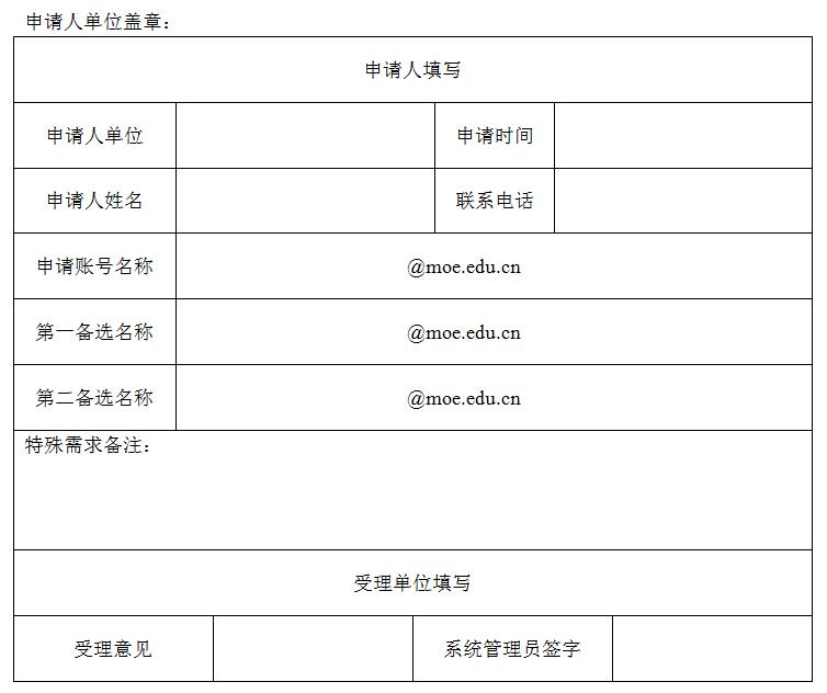 部机关电子邮件账号申请注册登记表